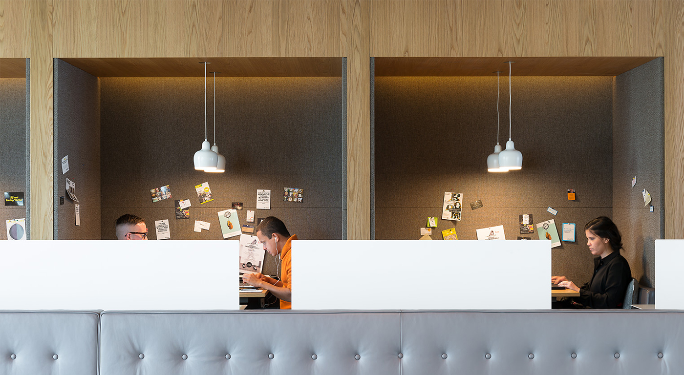 Veel mensen denken dat thuiswerken het belangrijkste is bij het Nieuwe Werken. Dat is niet zo. Want voor de ene werknemer is thuiswerken heel goed te doen en voor de ander onmogelijk. Daarom moet de kantooromgeving zo worden ingericht dat iedereen optimaal kan werken. Hoe? Door te zorgen dat rustig werken en kennis uitwisselen in balans zijn. Yin en yang.”