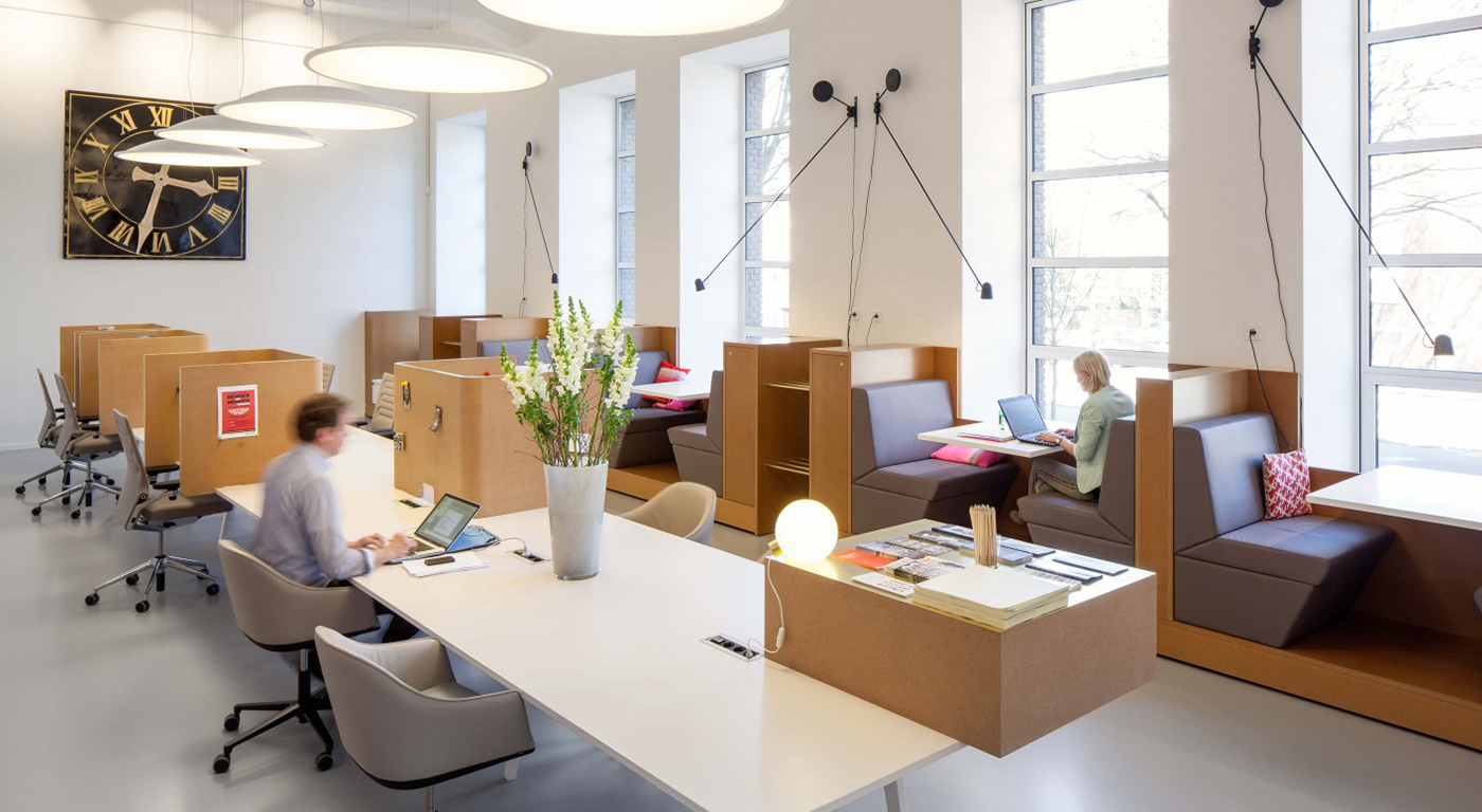 “Nee, het Nieuwe Werken is bij iedere organisatie anders. Het Nieuwe Werken gaat over mensen de keuze geven. In een ouderwetse kantooromgeving valt niets te kiezen. Je zit altijd in dezelfde kamer met dezelfde persoon tegenover je. In een goede werkomgeving ben jij in charge om keuzes te maken en optimaal te werken.
